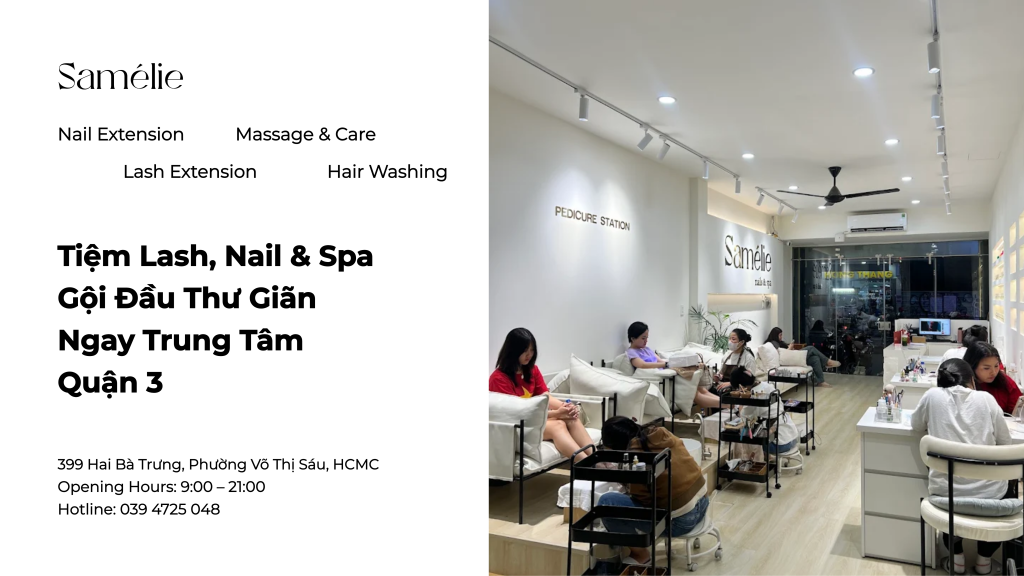 Nếu bạn đang tìm một tiệm nối mi, nail đẹp, gội đầu thư giãn chất lượng tại Quận 3, đặc biệt ở khu vực gần Nhà thờ Tân Định, chợ Tân Định, thì Samélie chính là điểm đến bạn không nên bỏ qua.